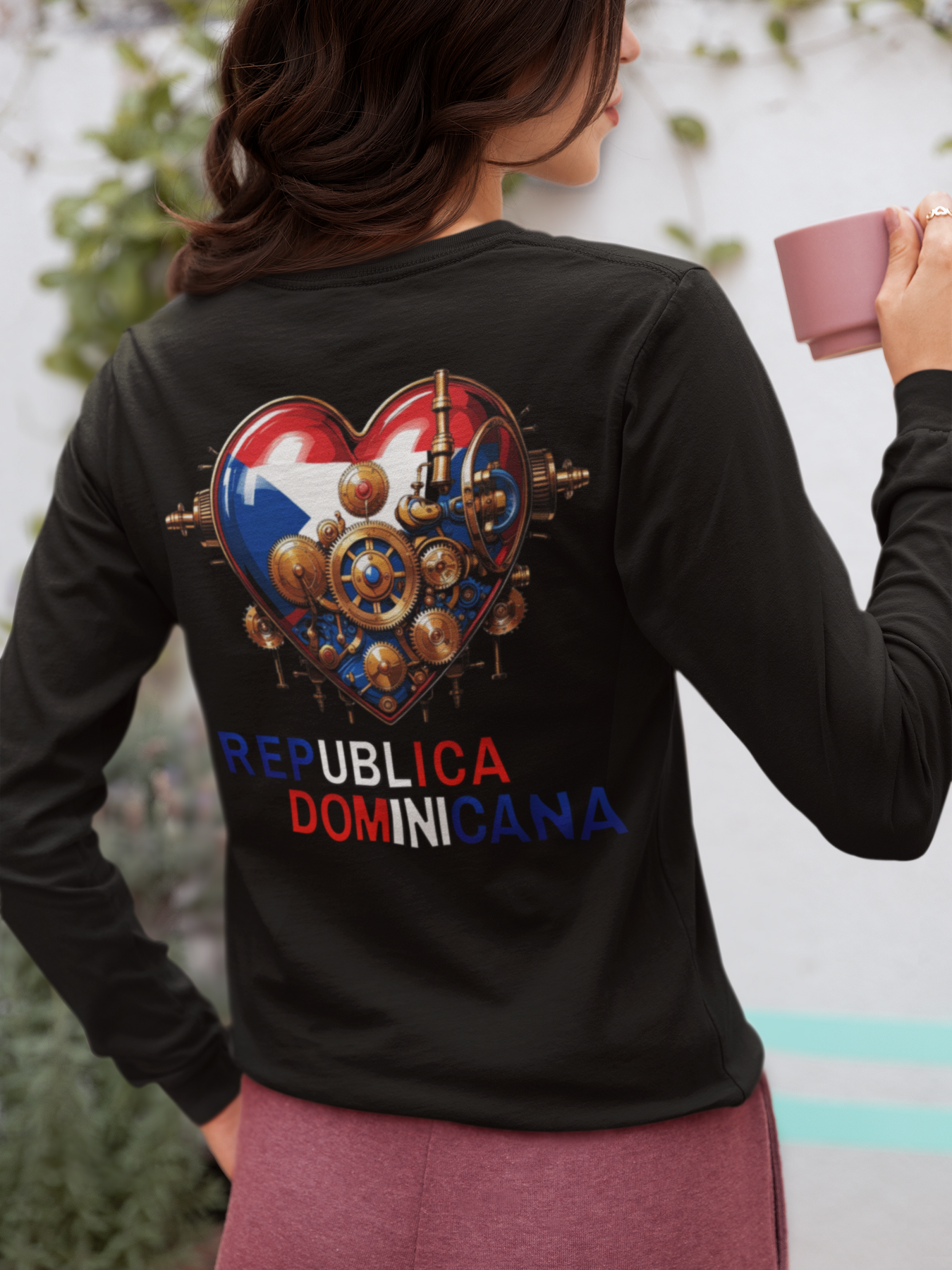 This design blends modern mechanical art with traditional Dominican symbolism, creating a unique piece you won’t find anywhere else. For anyone who carries RD in their corazón, this is more than apparel — it’s identity.